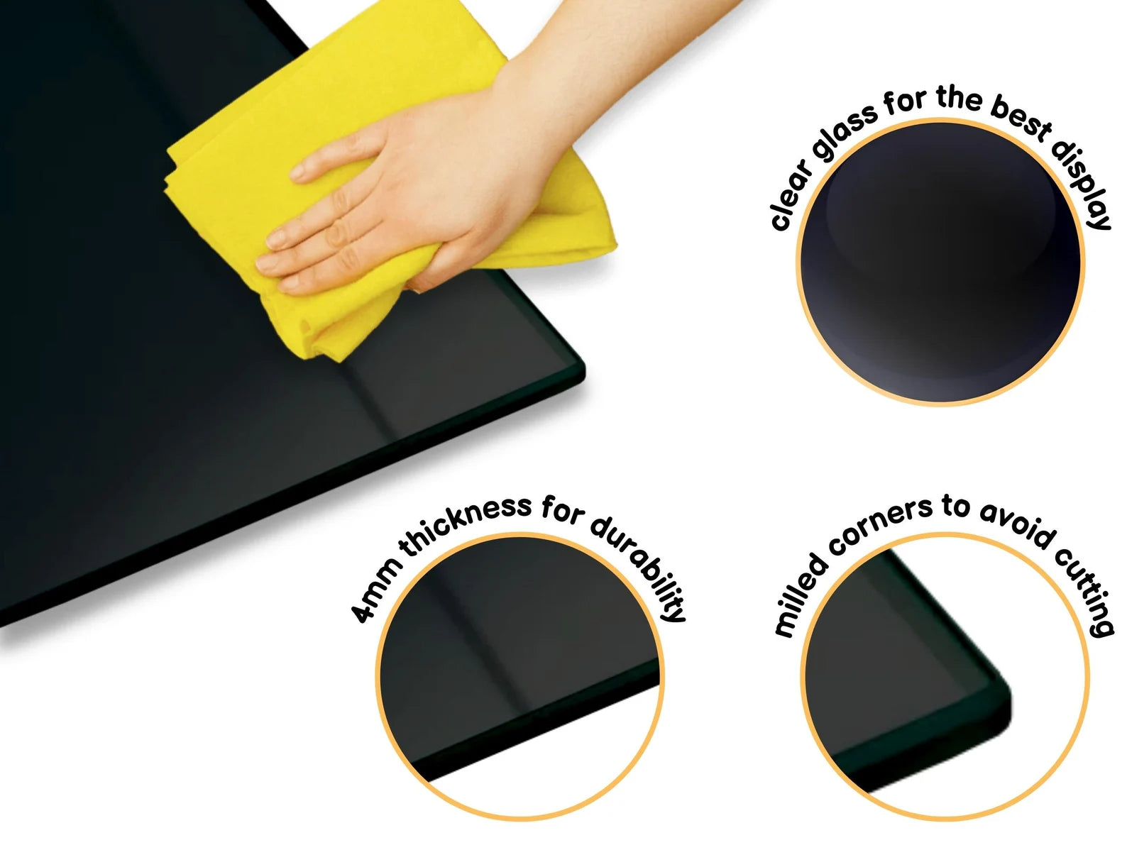 - Tempered (strengthened) material with high resistance to breakage