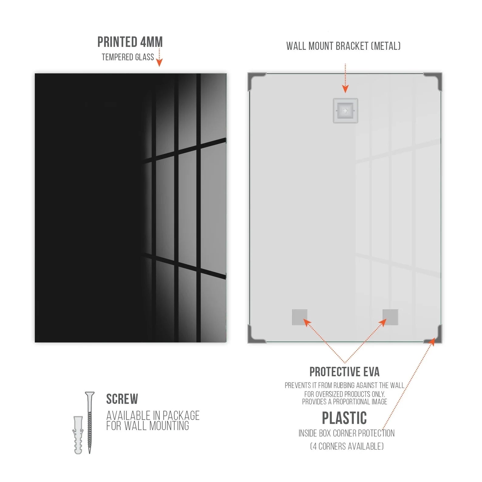- Since the printing surface remains inside the glass, the colors do not fade and retain their vitality.